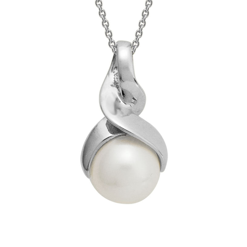 This pearl necklace is made of 14K white gold featuring one 8.5mm Akoya pearl. The chain can be worn at 16 or 18". Part of our Perla Collection.