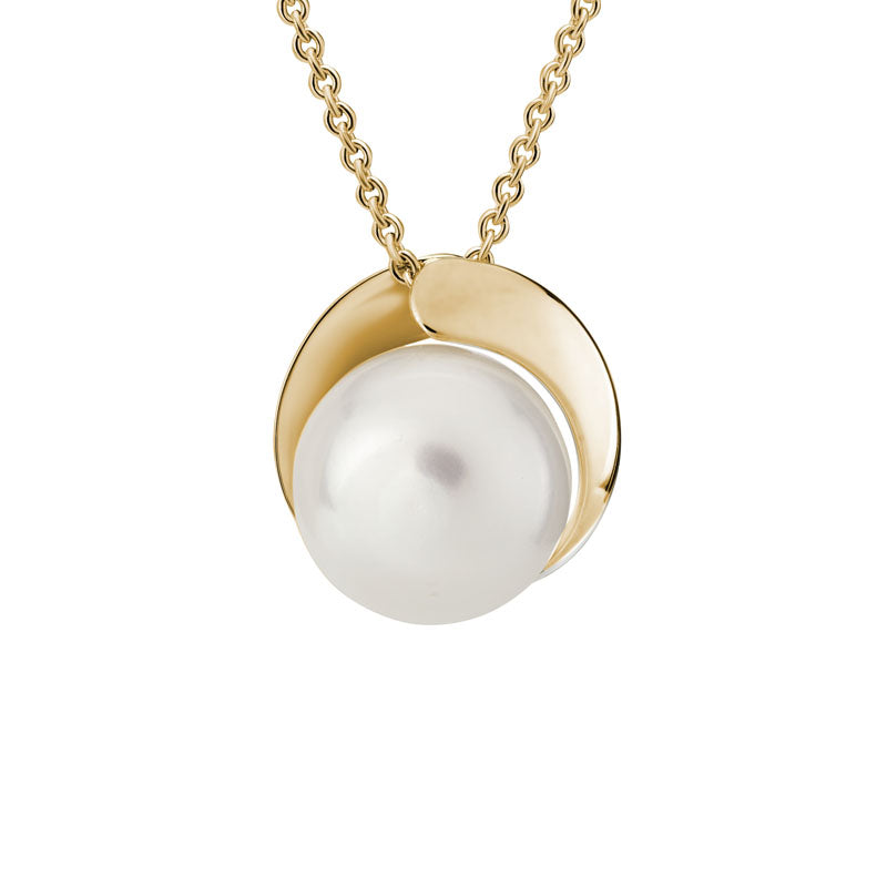 This pearl necklace is made of 14K yellow gold featuring one 9.5mm freshwater pearl. The chain can be worn at 16 or 18". Part of our Colores Collection."
