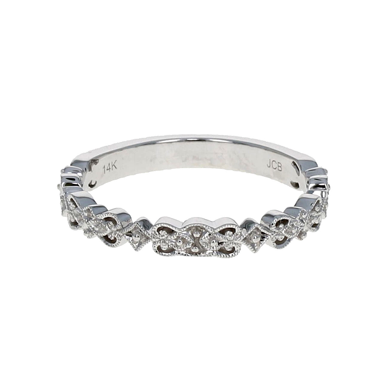 This vintage-style ring is made of 14K White Gold, featuring a milgrain design. Part of our Bridal Collection.