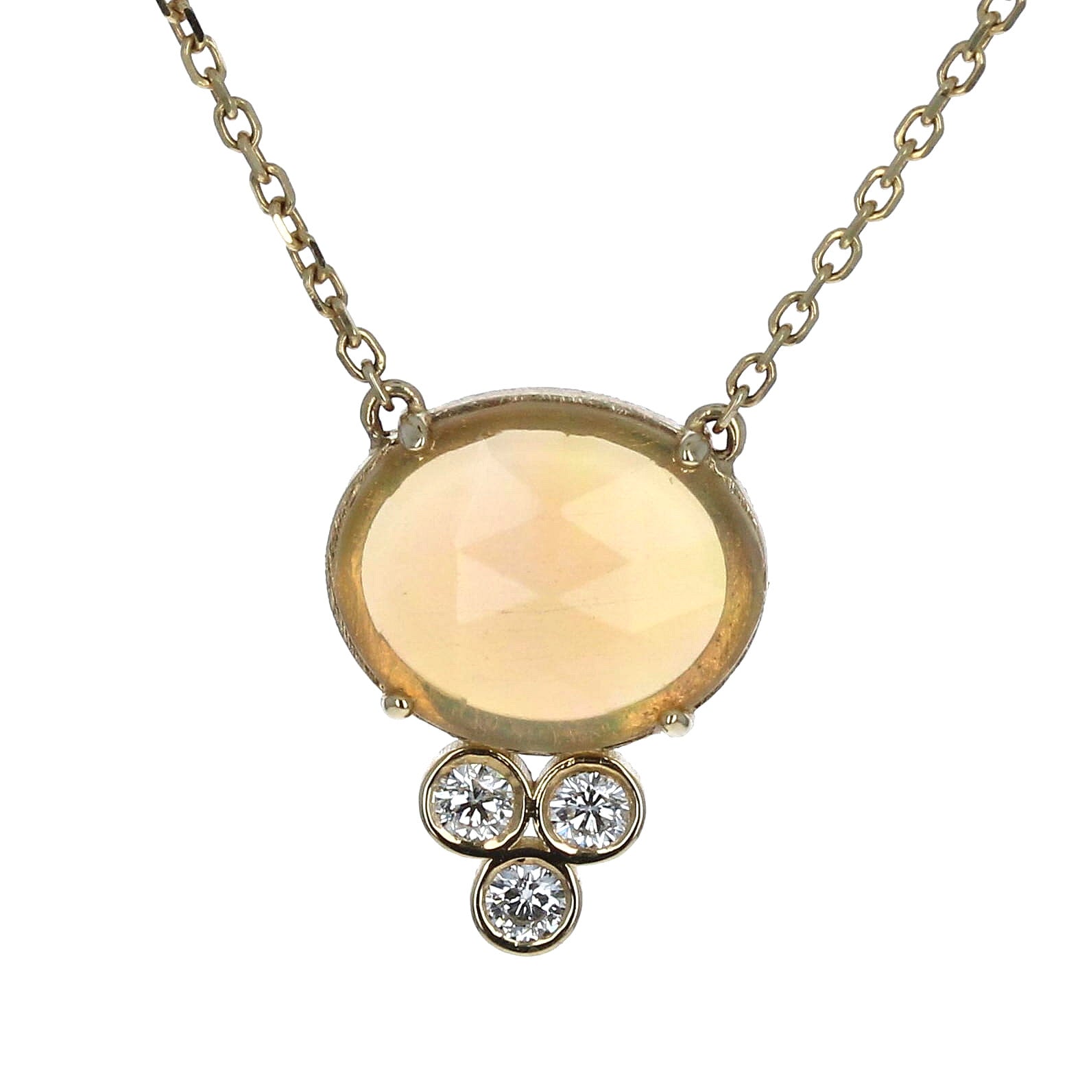 One Ethiopian opal totaling 1.42 carats, and three diamonds totaling 0.18 carat. Set in 14K Yellow Gold. Part of our Colores Collection.
