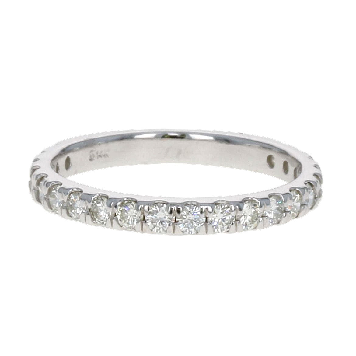 A 14K White Gold diamond band featuring Round Brilliant Cut diamonds that wrap around three-fourths of the band, and total 0.67 carat. Part of our Bridal Collection.