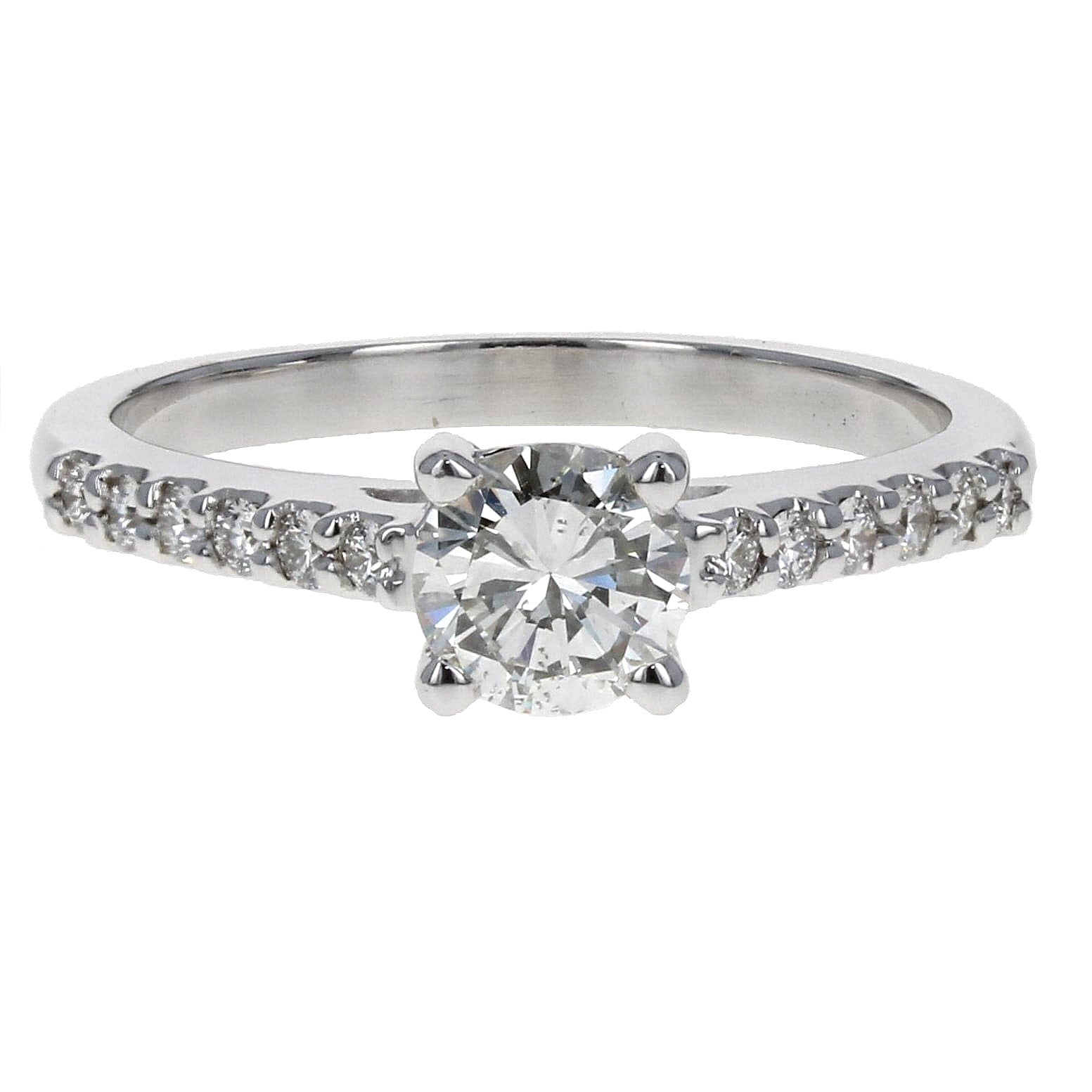 14K White Gold engagement ring featuring one Round Brilliant Cut Diamond, G/SI-1 in color and clarity, and totaling 0.51 carat. Accenting the center stone is 0.17 carat of diamonds on the band. Part of our Bridal Collection.